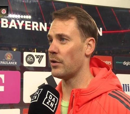 德甲第12轮,拜仁慕尼黑主场3-1逆转击败圣保利,赛后, 拜仁门将诺伊尔接受了DAZN的采访。诺伊尔说道:“我认为,今天...